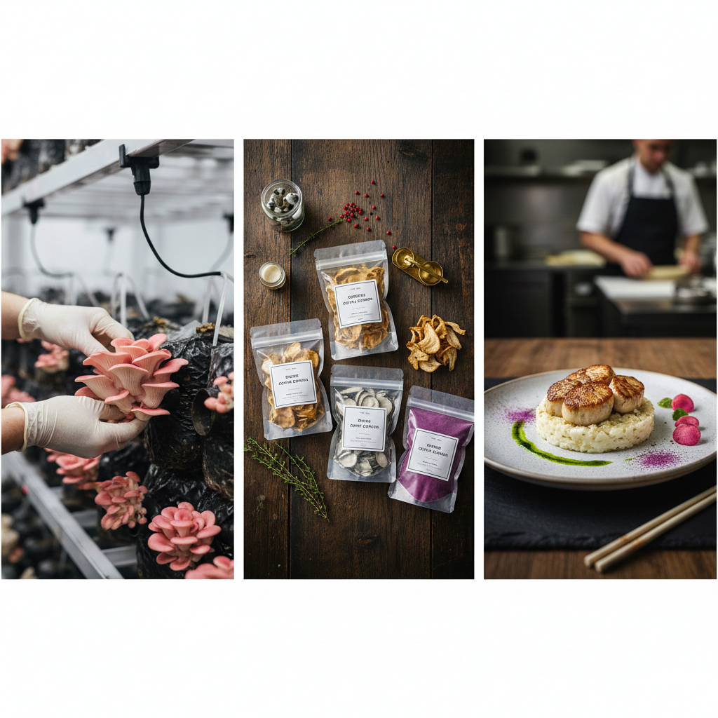 Note to Professionals: Our minimum order quantities (MOQ) vary by species to ensure we can provide the freshest possible harvest for your kitchen. Oysters are supplied in 3kg crates; Lions Mane are available in 3kg crates.